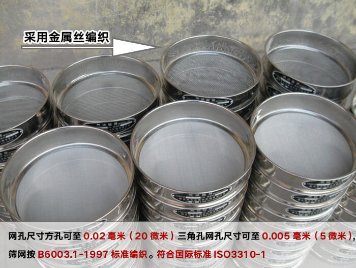因按網孔標記所以不同時間生產的同一規格網孔一致。金屬絲編織試驗篩,網孔尺寸方孔可至0.02毫米(20微米)三角孔網孔尺寸可至0.005毫米(5微米),篩網按B6003.1-1997標準編織。符合國際標準ISO3310-1:1990 R20/3,R20,R40/3系列,我公司生產試驗篩尺寸有保證,同一型號的試驗篩,不同時間生產的網孔相同.保證檢測的一致性.進口泰勒篩網孔尺寸與GB6003.1-1997相近,如中國140號網孔尺寸106微米,美國標準篩網號140#泰勒篩網號150#網孔尺寸105微米,我們可以根據用戶要求制作.可以選用105微米篩網為用戶配相應的泰勒篩,無論是網孔要求還是外觀都能符合要求。