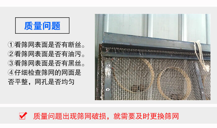 質(zhì)量問題是首要考慮因素,如果是質(zhì)量問題出現(xiàn)篩網(wǎng)破損,就需要及時(shí)更換篩網(wǎng)了