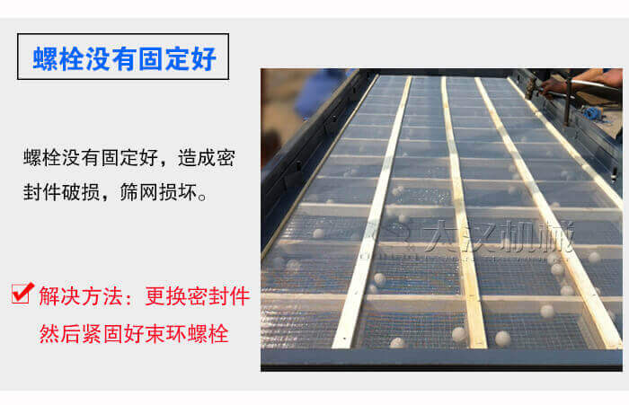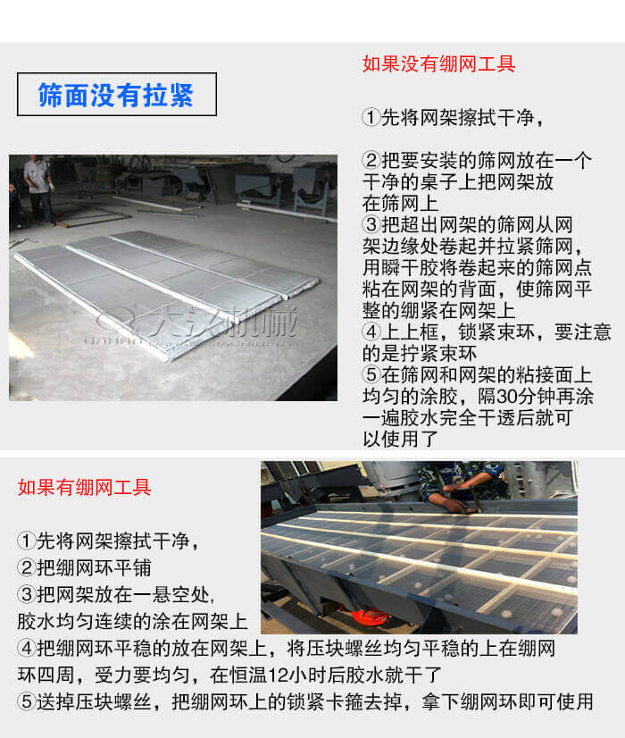 在篩網(wǎng)沒有拉緊的情況下,篩箱支撐條就會(huì)與篩網(wǎng)產(chǎn)生二次振動(dòng),在相互撞擊后導(dǎo)致篩網(wǎng)破裂,這種情況出現(xiàn)只需要拉緊篩網(wǎng)就好了。