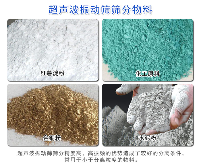 超聲波振動篩是將220v、50HZ或110v、60HZ電能轉化為38KHZ的高頻電能,輸入超聲換能器,將其變成38KHZ機械振動,從而達到高效篩分和清網的目的。超微細粉體接受巨大的超聲加速度,使篩面上的物料始終保持懸浮狀態,從而抑制粘附、摩擦、平降、等堵網因素。解決了強吸附性、易團聚、高靜電、高精細、高密度、輕比重等篩分難題,使超細微粉篩分不再難事,特別適合高品質、精細粉體的用戶使用 高頻振動篩采用筒體式偏心軸激振器及偏塊調節振幅,物料篩淌線長,篩分規格多,具有結構可靠、激振力強、篩分效率高、振動噪音小、堅固耐用、維修方便、使用安全等特點。由于高頻振動篩采用了高頻率,一方面破壞了礦漿表面的張力和細粒物料在篩面上的高速振蕩,加速了大密度有用礦物和析離作用,增加了小于分離粒度物料與篩孔接觸的概率。